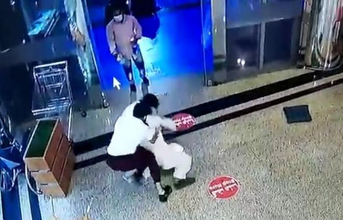 وأسفر ذلك عن سقوط المتحرش على الأرض، حيث أسرع حارس الأمن بإغلاق باب المول وقام بمعاونة زميله على إحكام قبضتهما عليه.