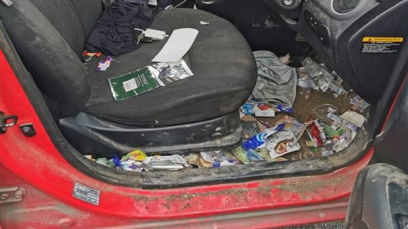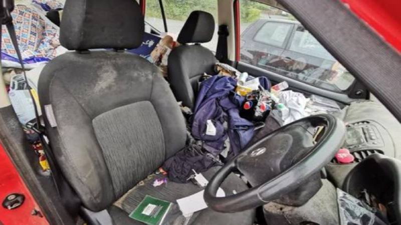 وكانت كابينة السيارة مليئة بالملابس المتسخة وبقايا الوجبات السريعة والمشروبات الغازية وعبوات التبغ على المقاعد عندما تم إحضارها إلى المركز، وقال العامل سام بوروز ، إن العميل ضحك وخرج من المركز بعد رفض فحصها.