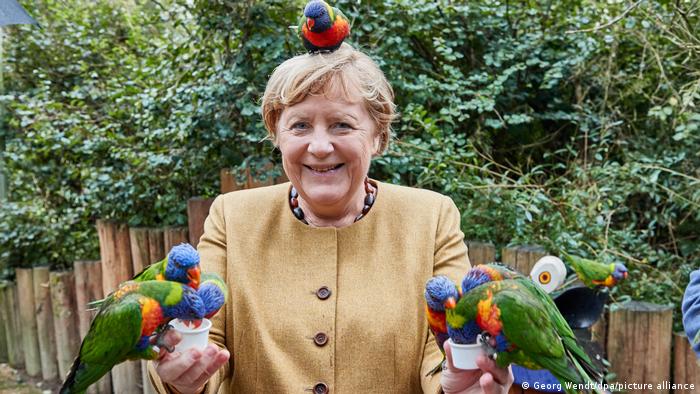 وفي زيارة الوداع توقفت ميركل في حديقة مارلو للطيور والتي تزورها للمرة الثالثة منذ عام 2012. وظهرت المستشارة الألمانية في آخر أيام مشوارها السياسي، متحررة من قيود البروتوكولات، وسمحت للببغاوات بأن تحط على ذراعيها بل وأن تصل إلى رأسها.
