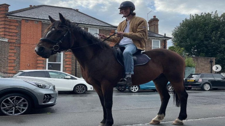 وصور الشاب نفسه بالقرب من منزله قبل نشر الفيديو على "إنستغرام"، واتضح لاحقا أنها كانت مرته الأولى التي يمتطي فيها حصانا.