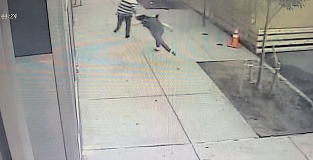 وثق مقطع فيديو، لحظة سقوط امرأة شابة على الأرض بعد شدها من شعرها من قبل شخص مجهول في وضح النهار أثناء تجولها في شارع إيست فيرست بمانهاتن في نيويورك، ولاذ بالفرار.