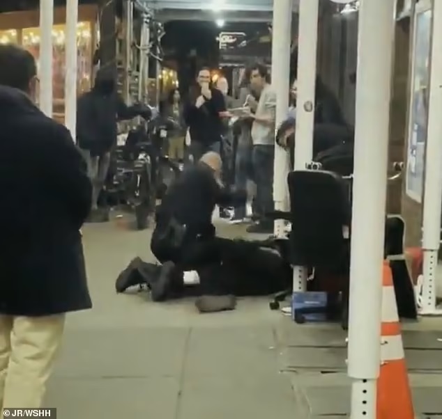 ويبدأ الفيديو ، الذي نشره موقع WorldStar.com ، بمحاولة الضابط تقييد يدي الرجل الذي لا مأوى له على طول شارع McDougal في الحي العصري الذي تصطف على جانبيه المطاعم.