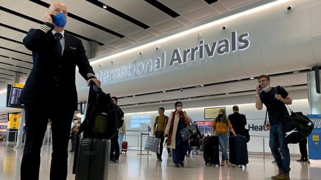 قال وزير الصحة البريطاني ساجد جاويد إن جميع المسافرين القادمين إلى إنجلترا سيُطلب منهم إجراء فحص كورونا قبل المغادرة إليها، وفي الوقت ذاته أضافت الحكومة نيجيريا إلى قائمة السفر الحمراء.