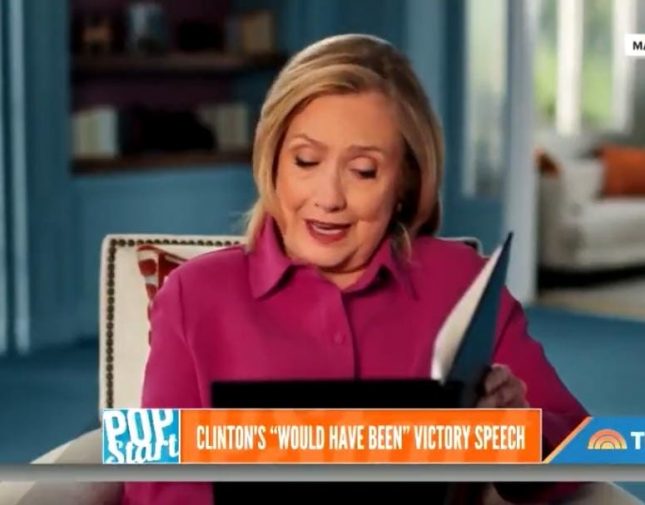 وخلال مقابلة حديثة لكلينتون مع برنامج Today، ظهرت مرشحة الحزب الديمقراطي للانتخابات الرئاسية الأميركية 2016، وهي تبكي أثناء قراءتها الخطاب، حيث كانت النتائج لصالحها آنذاك حتى آخر لحظة، لكن فاز دونالد ترامب، برئاسة الولايات المتحدة الأميركية.