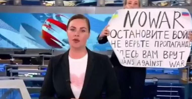 وكانت مارينا أوفسيانيكوفا ، وهي محررة في القناة الروسية الأولى، اعتقلت عقب ظهورها الاحتجاجي على شاشة التلفزيون مساء الإثنين تحمل لافتة تقول "لا للحرب".