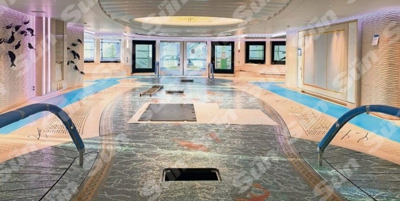أما في الداخل فهناك البذخ المطلق، فتوجد طاولة بلياردو ذاتية التسوية، ومنتجع صحي مع غرفة للعلاج بالتبريد وحوض سباحة يمكن أن يتحول إلى حلبة رقص.
