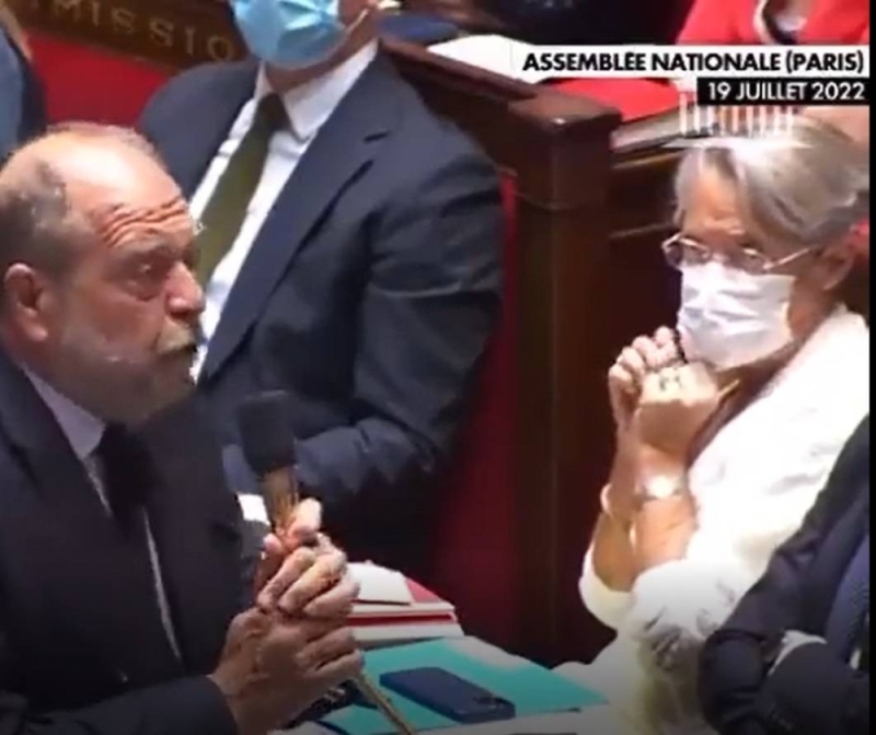 كما أوضح الفيديو رئيسة الحكومة الفرنسية وهي تدخن، بينما يتحدث حارس الأختام، إريك دوبوند موريتي، أمام الميكروفون.