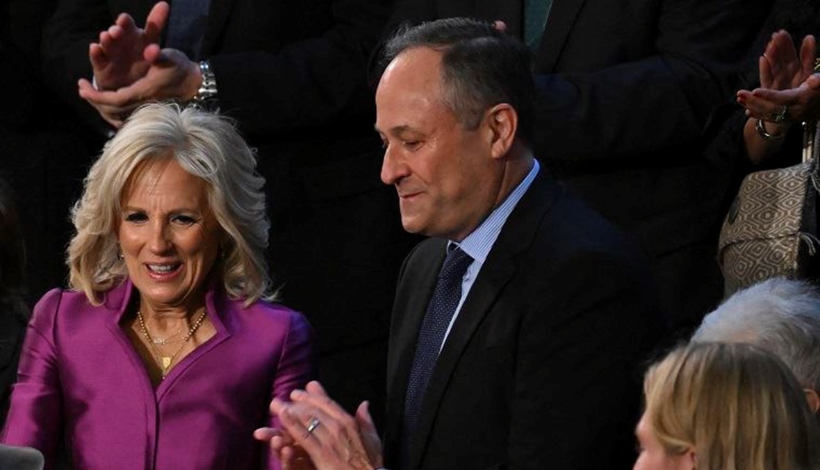 استقبلت السيدة الأميركية الأولى جيل بايدن، ودوغ إمهوف، زوج كامالا هاريس نائبة الرئيس، بعضهما البعض بفعل غريب، كما وصفته صحيفة "نيويورك بوست" الأميركية، قبل خطاب حالة الاتحاد الذي ألقاه الرئيس الأميركي الليلة الماضية.