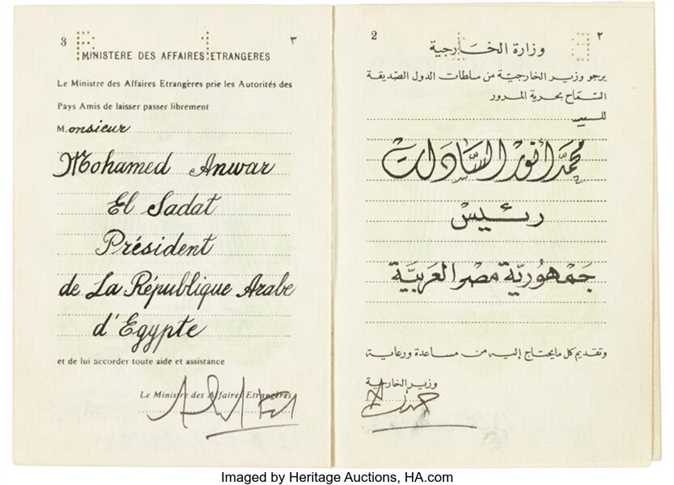 وبحسب ما نشرته صالة «هيريتج»، فإن جواز سفر السادات الدبلوماسي يحمل الرقم 1، وجرى إصداره في 19 مارس 1974، وظل ساريا حتى 18 مارس 1981.