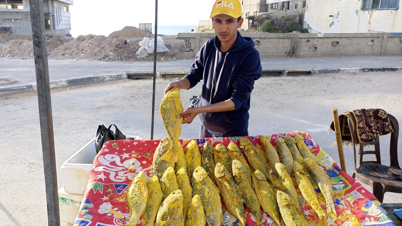 وليس بعيداً عن محل أبو حصيرة، وبالقرب من شاطئ بحر غزة، يعرض الشاب محمود خليفة على عربة خشبية صغيرة عدة أصناف من "الفسيخ"، الذي يصنعه ووالده داخل منزلهم، والذي يوفر لهم ذلك مصدر دخل مؤقت، يسهم في تحسين ظروفهم المعيشية.