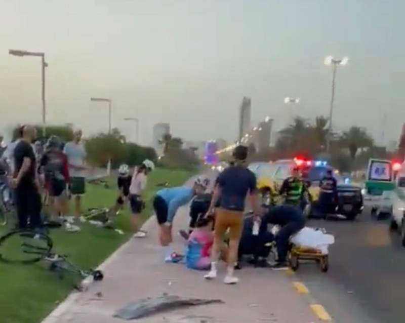 وأظهر مقطع فيديو، مجموعة من سائقي الدراجات الهوائية المصابين بكسور وجروح وهم ممددون على الأرض، وتم نقلهم إلى المستشفى بسيارات الإسعاف.