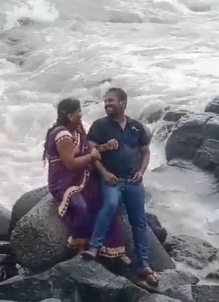 وأظهر تصوير فيديو جيوتي، وهي أم لثلاثة أطفال، وزوجها موكيش يجلسان على صخرة وهما يضحكان ويمسكان ببعضها البعض، بينما كانت أمواج البحر تصدمهما بشدة، وكانت ملابسهما مبتلة تماما، ومع ذلك رفضا الانسحاب إلى الشاطئ على الرغم من أن الأمواج القوية كانت تضرب بقوة على الصخرة التي جلسا عليها. ويمكن سماع صوت طفل يصرخ مناديا أمه عدة مرات قبل نهاية تصوير الفيديو.