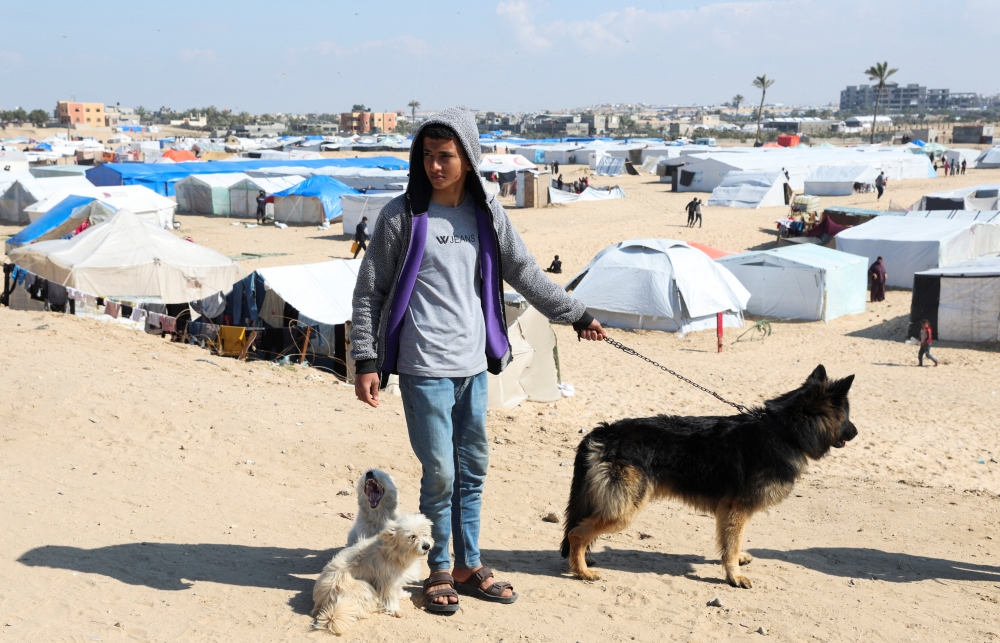 كلاب أليفة تجلب لشاب نازح في غزة شعور مختلط بين الفرح والقلق