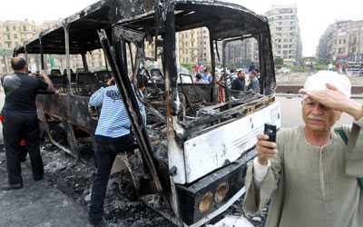 وقال شهود عيان لوكالة الأنباء الالمانية (د.ب.أ) إن المتظاهرين أحرقوا خلال المصادمات ثلاثة حافلات تابعة للجيش المصري.