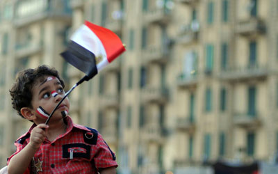 طفل مصري يلوح بعلم الجمهورية أثناء مظاهرة أمس - أ.ف.ب