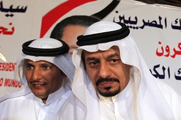 المحاميان الكويتيان فيصل العتيبي وعايد محمد عضوا مجموعة المحامين المتطوعين للدفاع عن مبارك. إي بي أيه