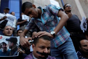 إعلاميون يقصون شعرهم إحتجاجاً على احتجاز زملائهم في "أحداث العباسية"