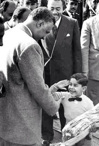 الصورة تظهر طفلا قالت عنه مواقع التواصل أنه السيسي وهو يؤدي التحية لعبدالناصر. انترنت