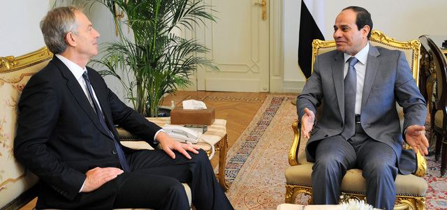 السيسي بحث مع بلير سبل تحقيق التهدئة بين الإسرائيليين والفلسطينيين. أ.ف.ب