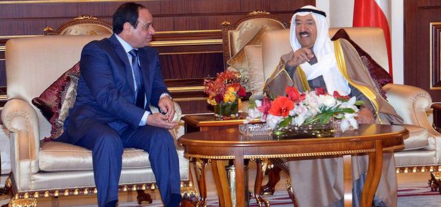 السيسي خلال مباحثاته أمس مع أمير الكويت الشيخ صباح الأحمد الجابر الصباح. أ.ف.ب