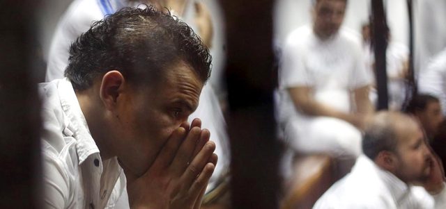 عدد من المتهمين في القفص خلال النطق بالحكم. أ.ف.ب