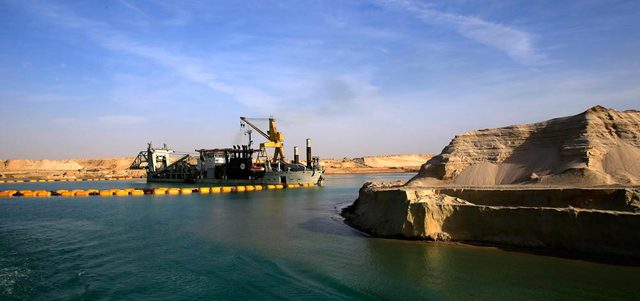جانب من أعمال الحفر في قناة السويس الجديدة. أ.ب