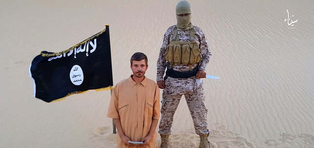 صورة من فيديو لعملية إعدام الرهينة الكرواتي على يد «داعش». أ.ب