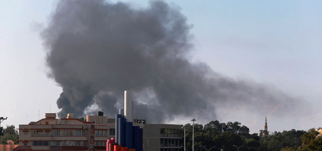 ارتفاع أعمدة الدخان خلال اشتباكات بين الجيش الليبي وميليشيات في بنغازي. رويترز