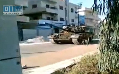 الجيش السوري نشر دباباته ومدراعاته في المناطق السكنية. صورة من التلفزيون - إي بي أيه
