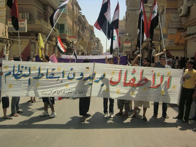 أطفال يتظاهرون ضد النظام السوري في مدينة دير الزور. رويترز