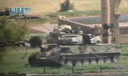دبابة تابعة للجيش السوري متموضعة في أحدى شوارع مدينة حماة. رويترز