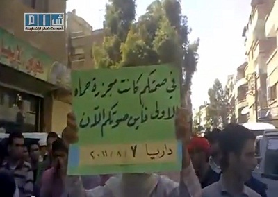 تظاهرات تندد بعمليات القمع التي واجهها المتظاهرون في مدينة حماة السورية. إي بي أيه