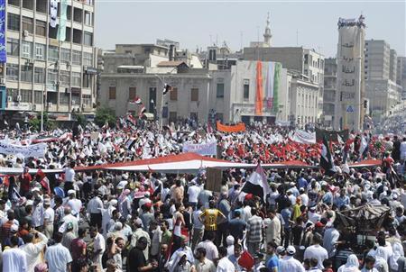 قال نشطاء إن القوات السورية قتلت 10 محتجين بالرصاص اليوم مع مطالبة عشرات الآلاف بسقوط نظام الرئيس السوري بشار الاسد مرددين هتاف "لن نركع إلا لله" على الرغم من حملة عسكرية أدت إلى فرض عقوبات وتوجيه الإدانات من الخارج.