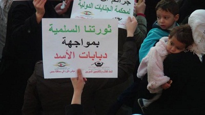 تظاهرة تضم أطفالاً ونساء في حمص. رويترز