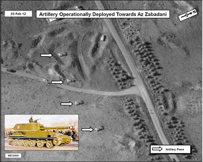 صور التقطتها الأقمار الاصطناعية ونشرتها "الخارجية الأميركية" لمجموعة من الدبابات التابعة لقوات النظام السوري تحاصر منطقة الزبداني. إي بي أيه