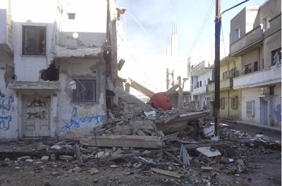 بيوت مدمرة في حي بابا عمرو بحمص. رويترز