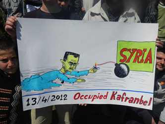 خرج عشرات آلاف المتظاهرين المناهضين لنظام الرئيس السوري بشار الأسد، إلى باحات وشوارع المدن والقرى، اليوم، غداة تطبيق وقف اطلاق النار الذي سجل خرقاً تمثل باطلاق قوات النظام النار على المتظاهرين، ما تسبب بمقتل خمسة أشخاص.