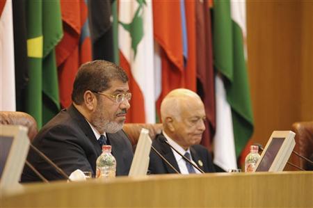 الرئيس المصري محمد مرسي يتحدث أمام اجتماع وزراء الخارجية العرب في القاهرة - رويترز