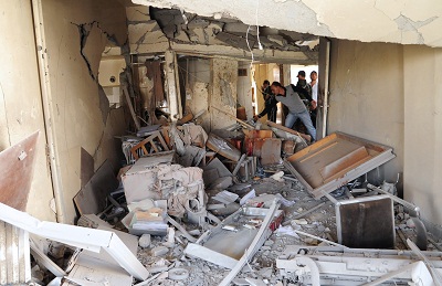 آثار الدمار في عدد من المنازل جراء الانفجار. أ ف ب