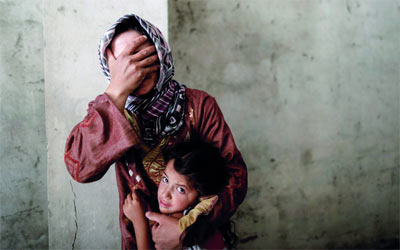 امرأة تبكي وهي تحتضن ابنتها عقب غارة جوية شنتها القوات السورية بالقرب من منزلها في حلب. أ.ف.ب - أرشيفية