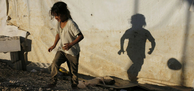 طفلة سورية في أحد المخيمات بالبقاع اللبناني. أ.ف.ب