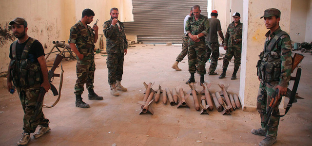عناصر من قوات النظام السوري في إحدى مناطق حلب. رويترز