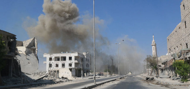 انفجار نَجَم عن إلقاء القوات النظامية برميلاً على مدينة حلب أمس. أ.ف.ب