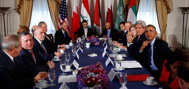 أوباما يؤكد في لقاء ضم عبدالله بن زايد ومسؤولين عرباً أن التحالف الدولي ضد الإرهاب يوجه «رسالة واضحـة».. ويدعو إلى الوحدة في مواجهة «التنــظيم»