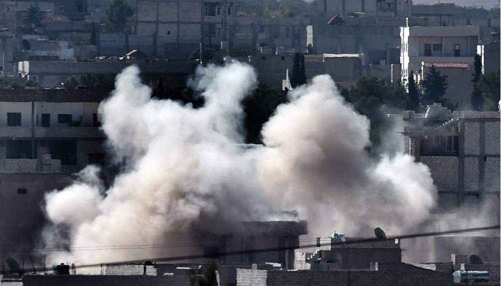 صور لانفجارات في مدينة عين العرب نتيجة القصف المتواصل لداعش على المدينةز ا ف ب
