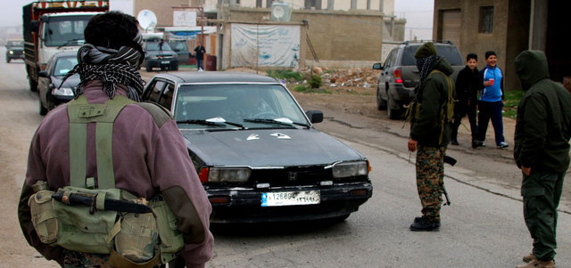 مسلحون يمنعون سير المركبات في قرية البزالية مسقط رأس الجندي اللبناني علي البزال الذي أعدمته «جبهة النصرة». أ.ف.ب