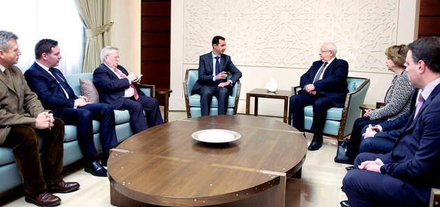 الأسد لدى لقائه البرلمانيين الفرنسيين في دمشق. إي.بي.إيه