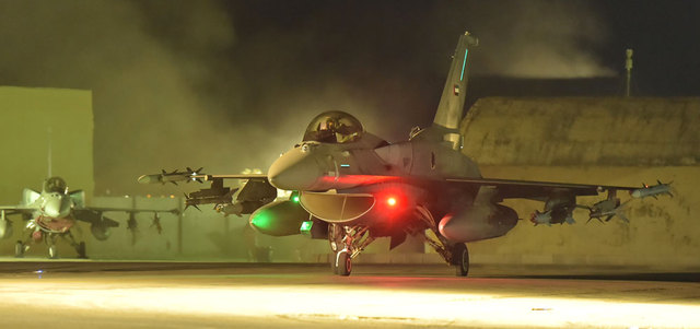 المقاتلات الإماراتية من سرب «إف 16» المتمركزة في الأردن نفذت ضربات جوية ليلية ضد مواقع «داعش». وام