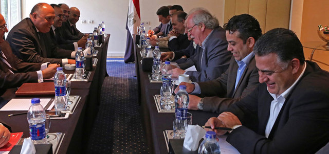 شكري لدى لقائه لجنة متابعة اجتماع القاهرة للمعارضة السورية. أي.بي.إيه