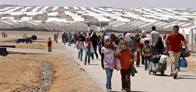لاجئون سوريون في مخيم الأزرق للاجئين في الأردن أول من أمس. أ.ب